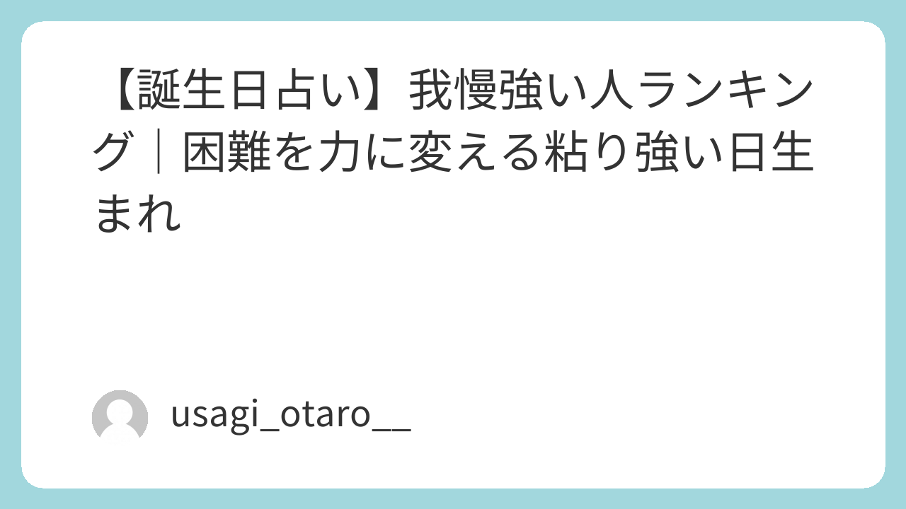 🌙 我慢強い人ランキング